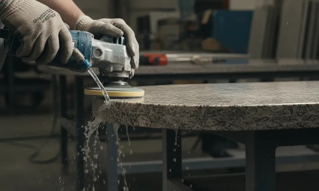Learning how to polish granite countertops after cutting requires immediate attention. The freshly cut edges expose the raw stone matrix. Begin by removing saw marks with a 50 grit polishing pad, then gradually increase to a 3000 grit pad. Throughout this process, be sure to use ample water to cool the diamond resin and extend the tool life.
